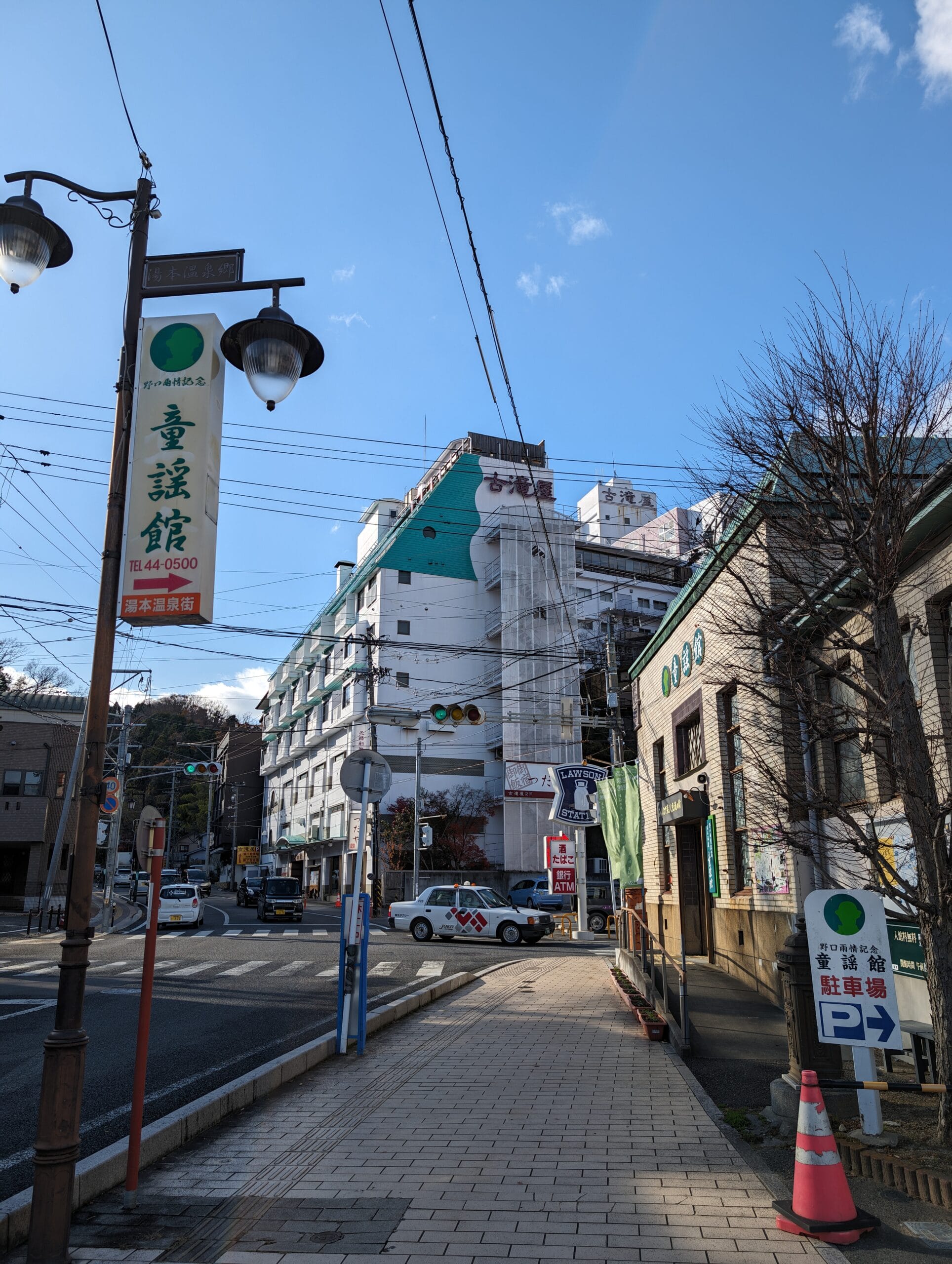 The hotel is situated in Yumoto, approximately a 2-hour JR train ride from Tokyo. It enjoys a convenient location near the station, making it relatively closer compared to other hotels in the area. Additionally, guests will find the convenience of having a Lawson convenience store right next door to the hotel.